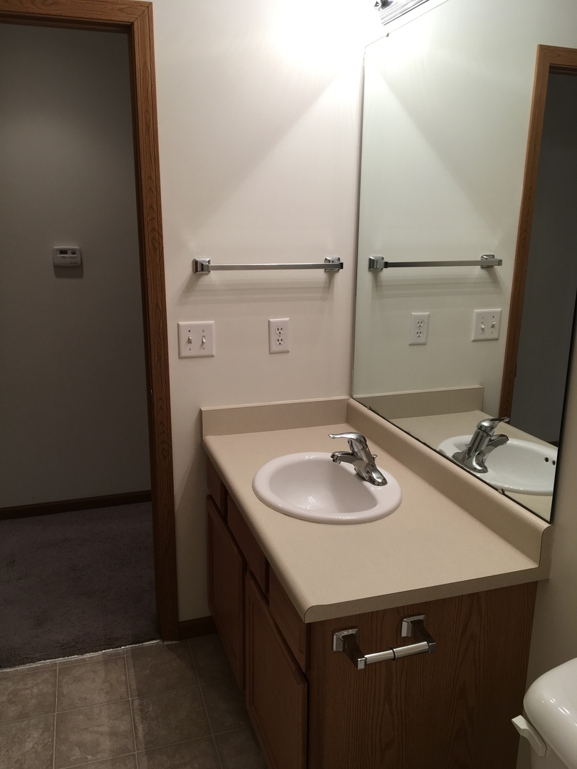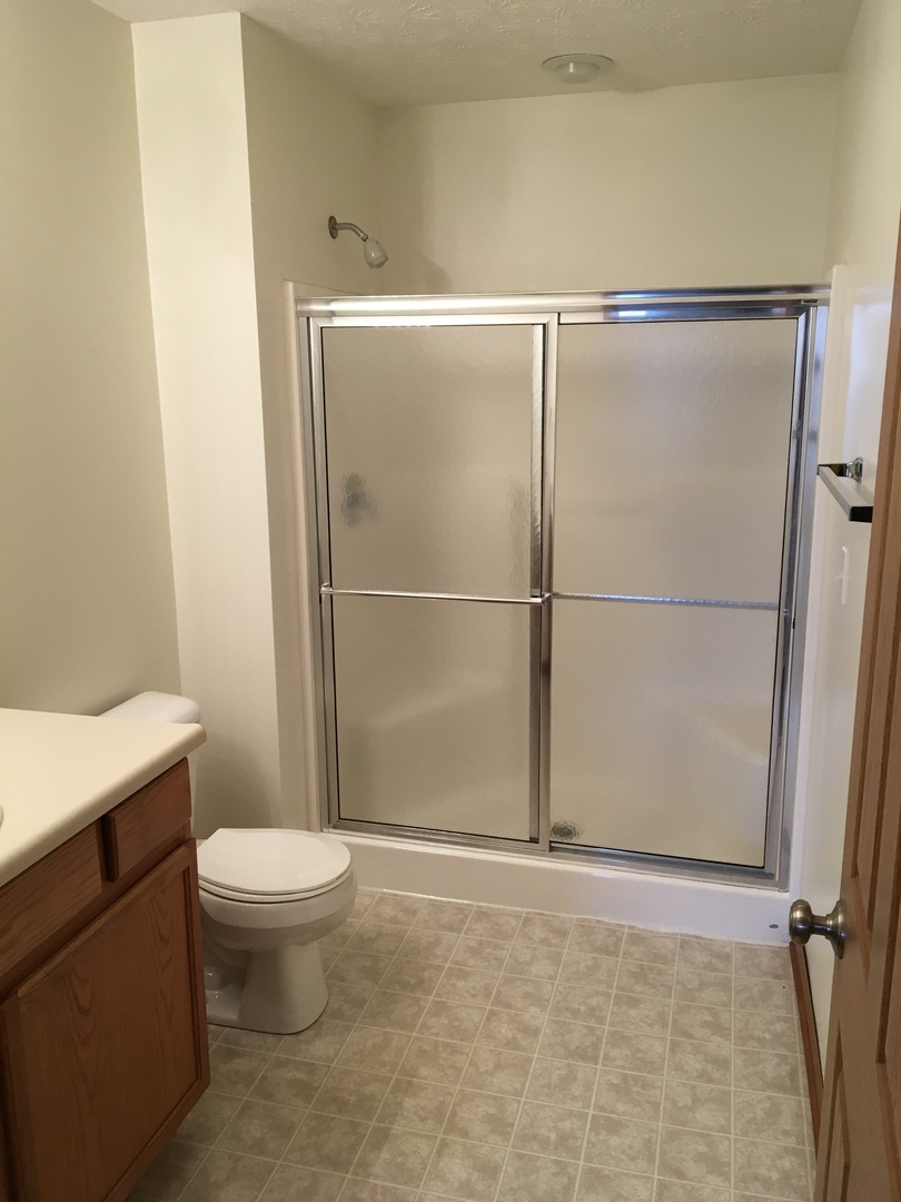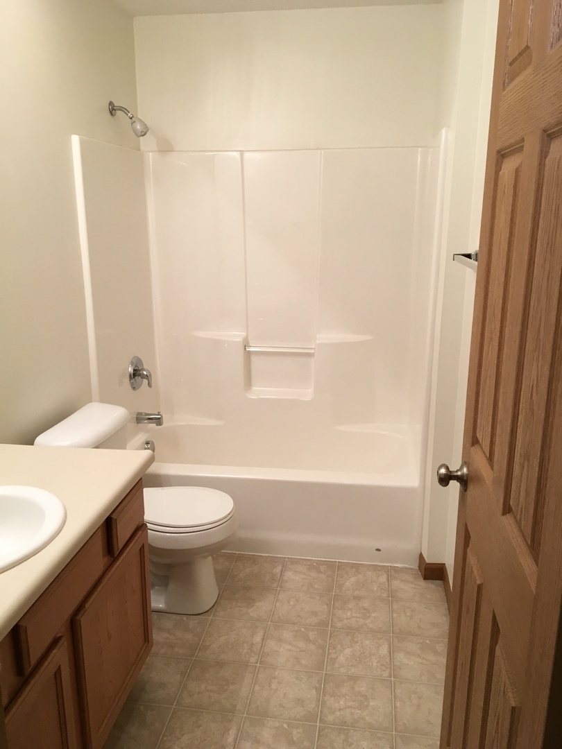 This two bedroom apartment features two full baths, one car garage with opener, and a fully equipped kitchen. The living room and kitchen have cathedral ceilings. Bedrooms and living room are furnished with ceiling fans. Washer and dryer are included. Private, fenced patio. The apartment has central air and gas forced air furnace.
